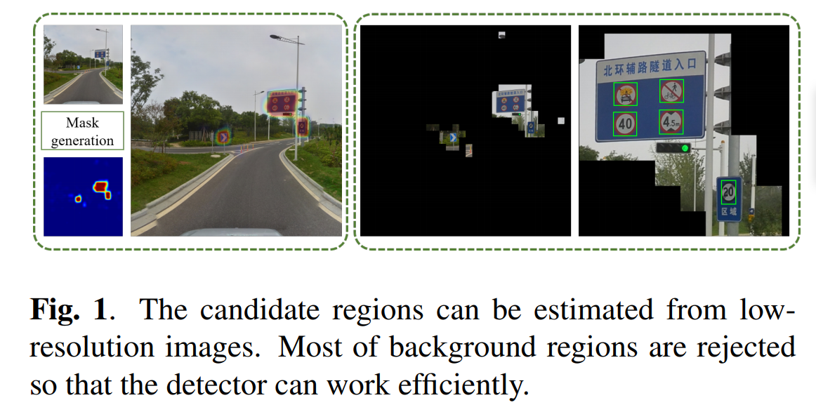 A straightforward solution to solve “small object detection frameworks” is to enlarge the input iamge size.As such, the feature size if proportionally enlarged and the feature representation is finer. howerver, the computational cost is also proportionally increased,and even more of it is wasted on the irrelevant background,making hte entire detection process highly inefficient.(就是找出那些需要放大的小目标,从而提高效率,那么问题的难点或者重点就在于怎么定位小物体和无用的背景区域)
